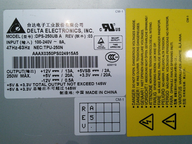 型番:DPS250UB A REV:03